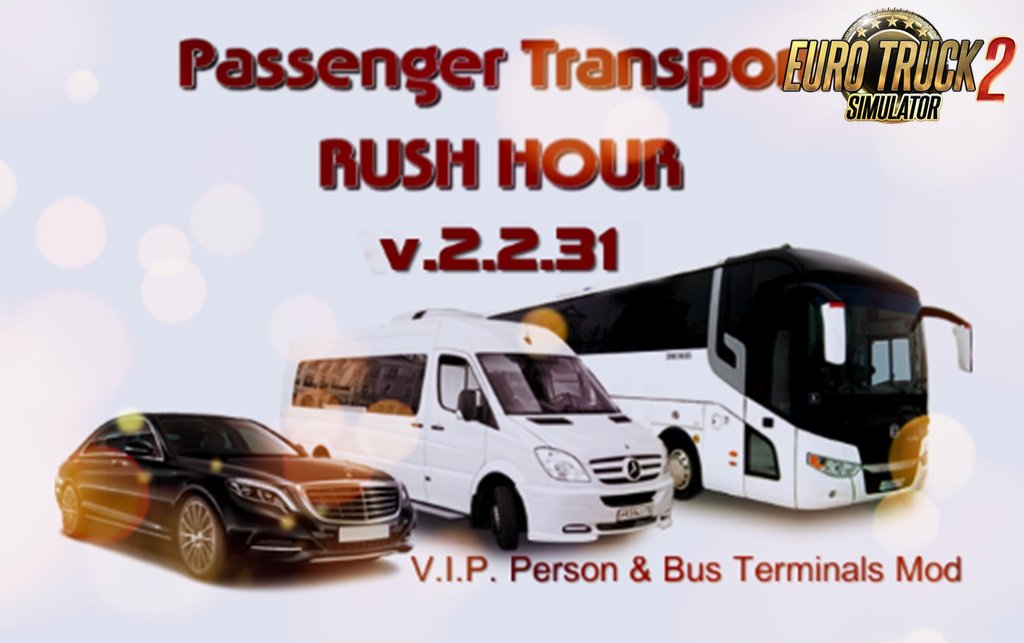 Passenger Transport! Rush Hour! v. 2.2.31 for Ets2 1.31.x game version (updated) If you like buses and cars in ETS 2 game this mod is for you. V.I.P. Person as Special Transport and bus terminals with passengers for your buses and cars. Good prices according to responsability for your passengers. Passengers econom and business classes for transportation. You need DLC France, Italy, Scandinavia and DLC Special Transport for use this mod and play. Bus Terminals on default map created by FRANCK PERU. V.I.P Person and all mod compilation by pppt Credits: pppt |