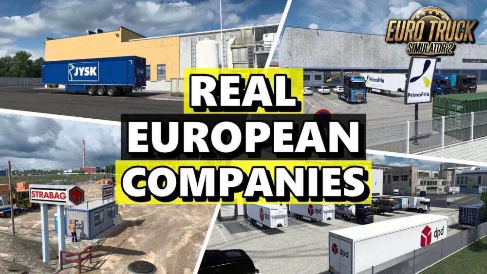 This mod replaces ALL (over 150) original SCS companies inside base game and map DLCs. Mod is made from the ground up and thus is only DirectX 11 compatible. It is compatible with v1.47.x+ and does not support the previous versions but it should work except you’ll see the SCS companies’ names. It replaces texture files (.dds) hence is always error free. Update: – Updated and rebranded – Italia Trasporto Aereo –> ITA Airways (Base / Italia) – Fixed one company name. Credits: ExiaRS |