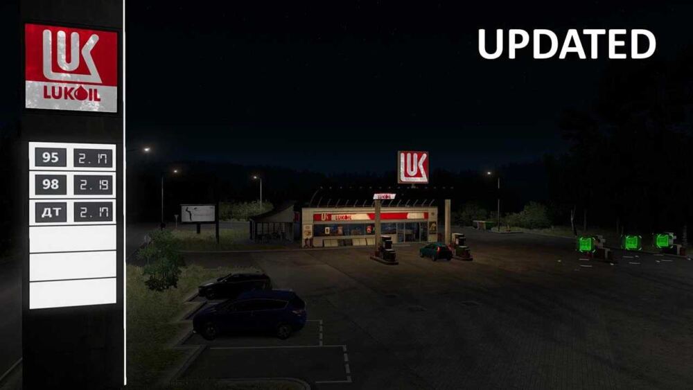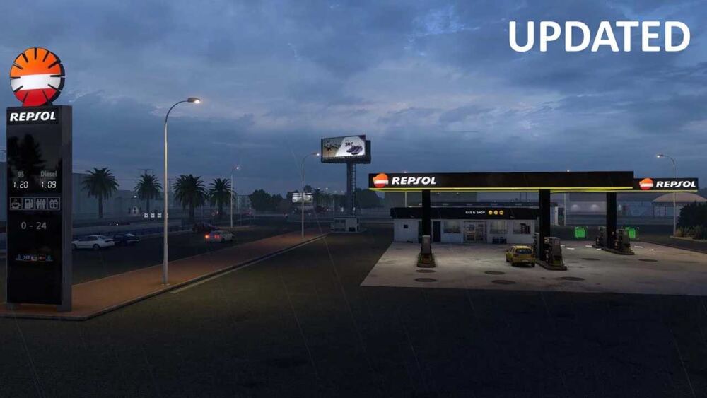 This mod replaces original gas stations in ETS 2 (9 is hard coded) and partially replaces (hybrid) gas stations (companies) in the map DLCs and Germany Rework.