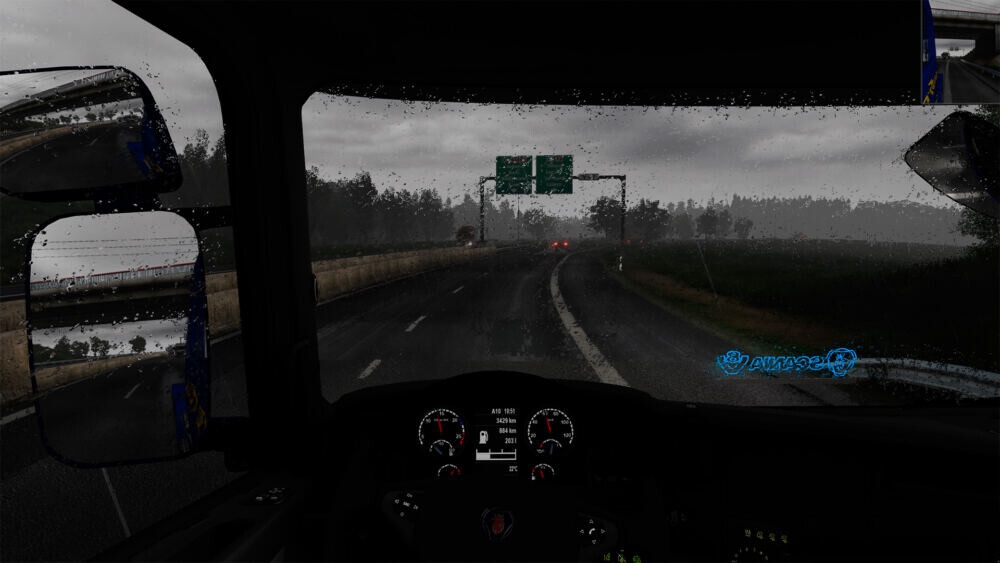 Changelog v3.8 for 1.39: – Slightly improved the textures of the drops on the windows and windshield – Rework on the behavior and effects of raindrops on the windshield and windows – Increased visibility of raindrops on windshield and windows – Slightly improved opacity for “outside” rain – Slightly improved the sound of raindrops hitting the truck cabin (1.39 version) Features – Improved textures of raindrops from inside cabin (windshield & windows) – Greater amount of raindrops from inside cabin (windshield & windows) – Improved textures of rain – Better windshield effects – Improved water particles/spray of the wheels (Truck and AI Traffic) – Realistic rain sounds from inside cabin & outside view – Realistic & High quality thunders sounds – Greater variety of thunder sounds (more than 15 different thunders sounds) Note: Thunders will be heard in an interval between 1.5 to 5 seconds when seeing the ‘flash’ (lightning), simulating as IRL The number of drops on windows will vary depending on the intensity and the direction of the rain Compatibility – 1.39.x (DirectX11) – FMOD Support. Clean log – Compatible with all DLC’s and it should work with Mods Maps (ProMods, RusMap…) – It should work fine with other Weathers/Graphics Mods, give it a try. But remember put RR above in priority. Requeriments – Must have high priority in Mod Manager. Realistic Rain ABOVE of Weathers/Graphics, Maps and Sound mods. Credits: Author: Darkcaptain Thanks for support & feedback: Antoniopua, Stropher, Nebo Designs, silberfuchs Thanks for the help with FMOD Tool: Robinicus Thanks for the help in previous versions: Cip, Frkn64, AlexeyP Credits: Darkcaptain |