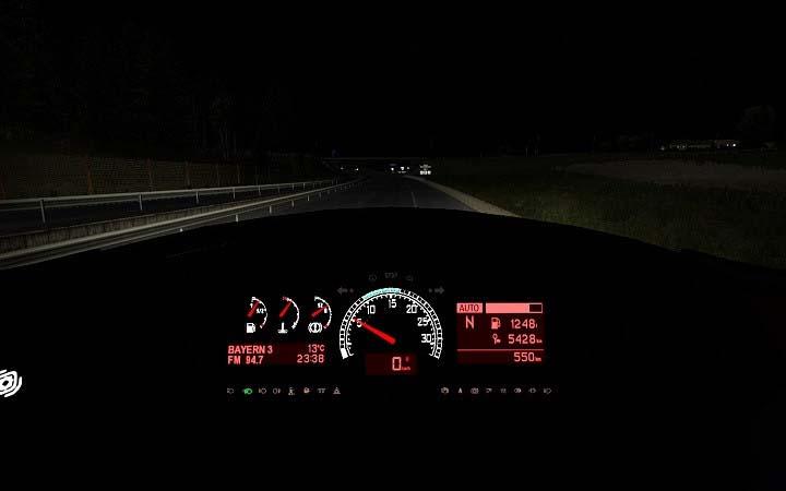 2018-03-19 Another one custom dashboard with optional interior and sound. Dashboard contain engine brake, parking brake, low air, low fuel and damage indicators (red flash ball for both). Highly recommended use this dashboard with dark interior (included in pack). Also add custom truck stock sound (SCS sounds with a bit updated). Credits: Piva Credits: Piva |