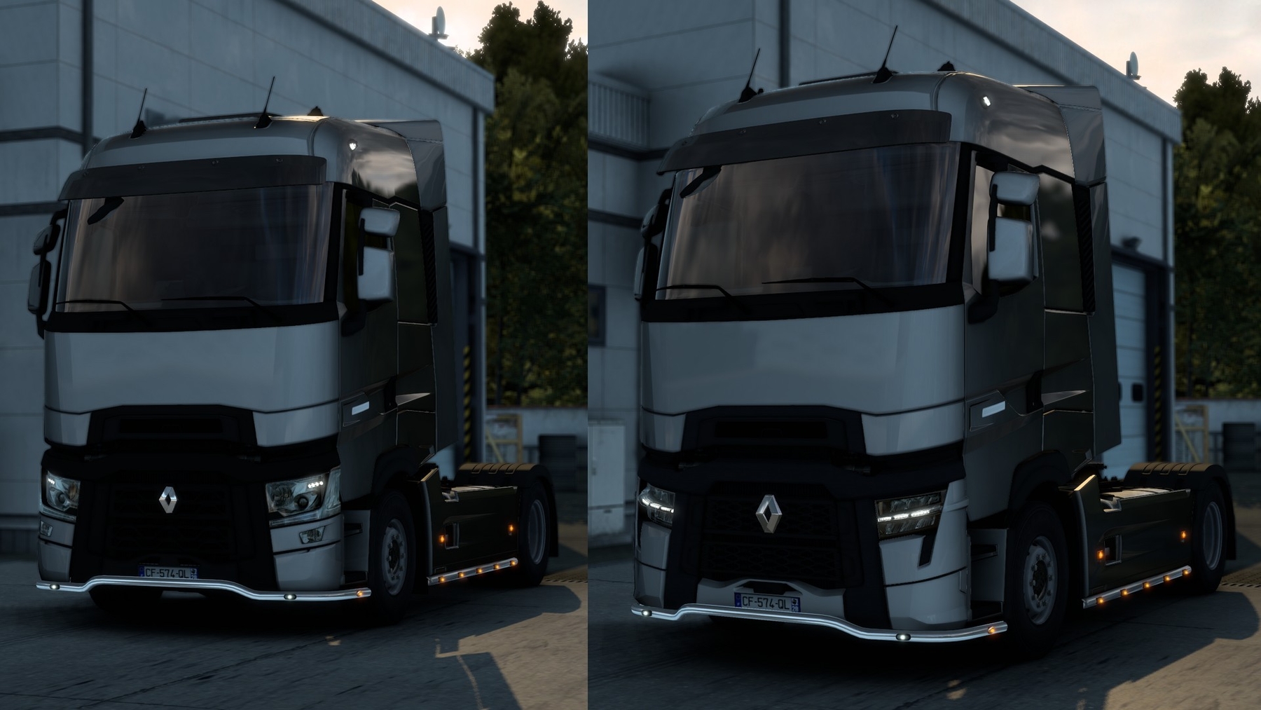 v1.2: Updated for 1.44 This mod replaces Renault T DRLs with front position lights with increased brightness, to compensate for the loss of DRLs. Credits: Remi |
