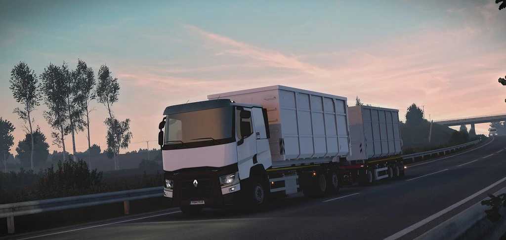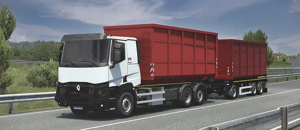 This mod gives you new hooklift chassis variant for SCS Renault T trucks. Chassis have own definition, so there are no conflicts with other mods Compatible with truck mod Renaul T, C, K by Aryan, i just create new definition for it Compatible with any mods 2 containers (with template (located in archive)) Standard tuning (fenders, sidewall, rear lights) Liftable/steerable axle Advanced coupling Clean log Missing in interior PTO panel Known issue (trailer cables dont work and I gave up this fight after half a day of solving where is problem) Archive is open, do what you want… Credits MirusoxCreations Credits: MirusoxCreations |