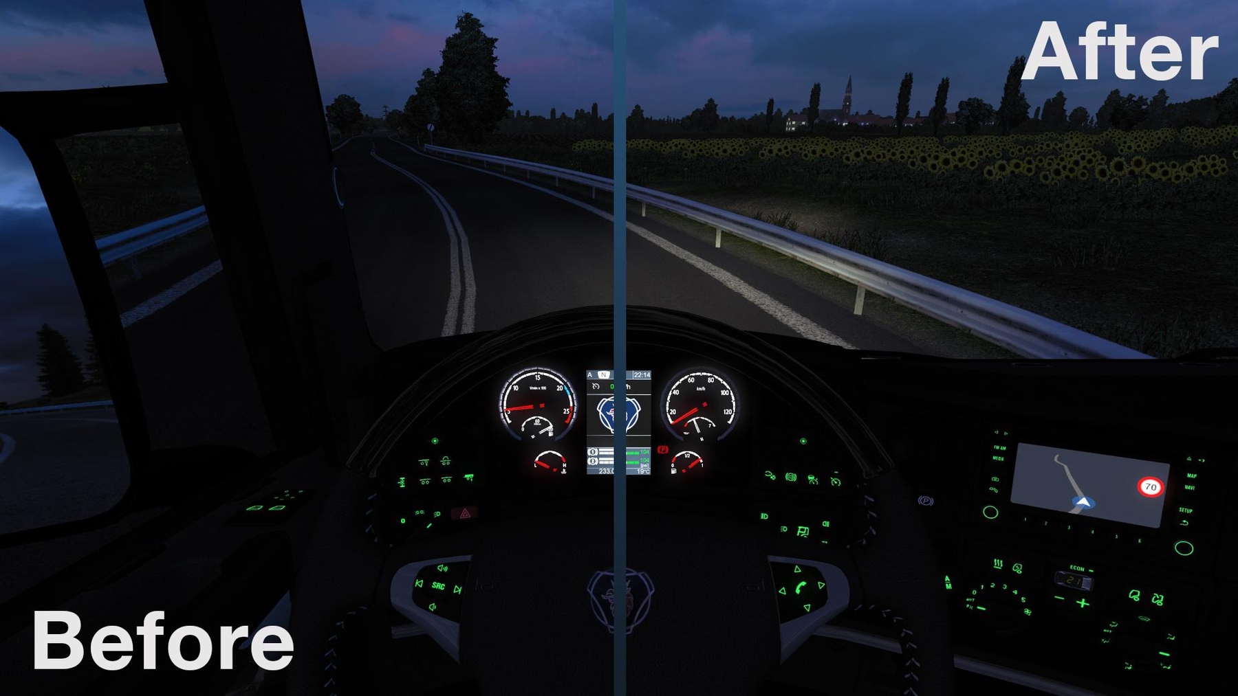This mod remove RJL´ Scania gauges edges. Compatible with mostly dashboard mods. Credits: Leozin Credits: Leozin |