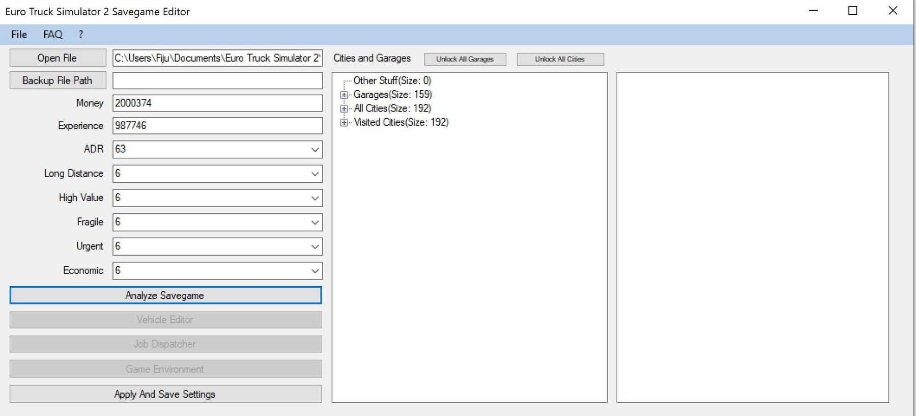 Hello with this small program you can modify your Save Game on ETS2 / ATS no installation required. Credits: Jommy |