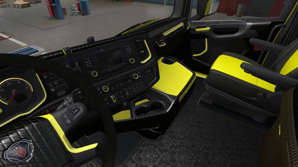 Black & Yellow Yellow Interior for Scania 2016. This mod replace standard interior. Supported trucks: – Scania S 2016 – Scania R 2016 Credits: Shadow (GameMods) Credits: Shadow (GameMods) |
