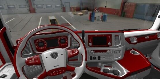 Red and white interior for nextgen scania s and r. 1.40 compatible Credits: ruoska Credits: ruoska |