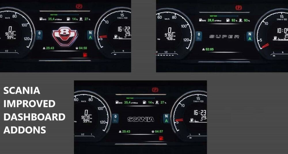 This mod improves the Scania NG dashboard: