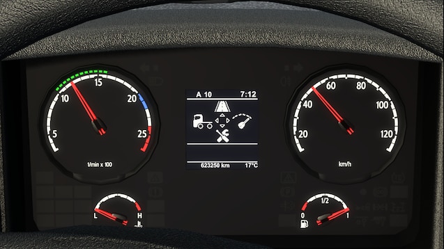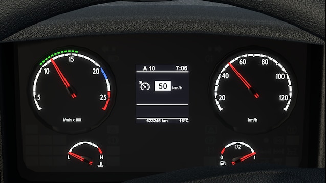 This is a mod replacing dashboard of RJL Scania G, R & Streamline old panel interior. Includes: -Transmission mode -Gear info -Clock -Odometer -Ambient temperature -Dashboard display menu -Trip distance -Trip average speed -Trip average consumption -Engine running time -Brake air pressure -Instant fuel consumption -Battery voltage -Low air pressure warning screen -Damage warning icon -Cruise control speed screen Credits: LCNE Credits: LCNE |
