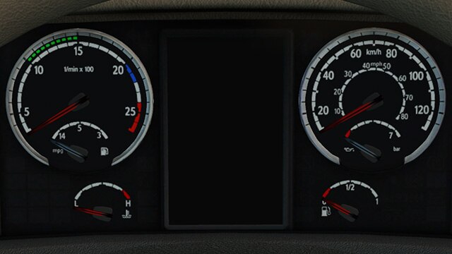 Realistic HD Gauges for Scania R/Scania Streamline Features: -Reworked tachometer & speedometer ring (rounder geometry with realistic black markings) -High resolution LHD speedometer -New UK Speedometer (km/h main display with mph overlay) -Fuel consumption gauge is in mpg for UK version Credits: Oscar |