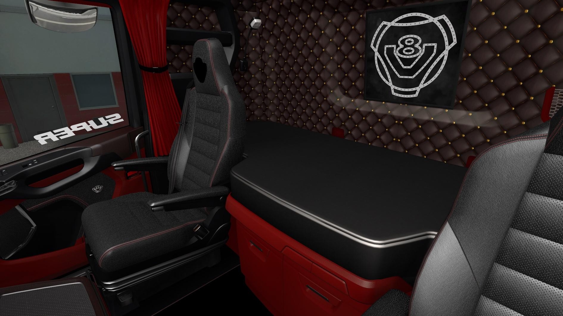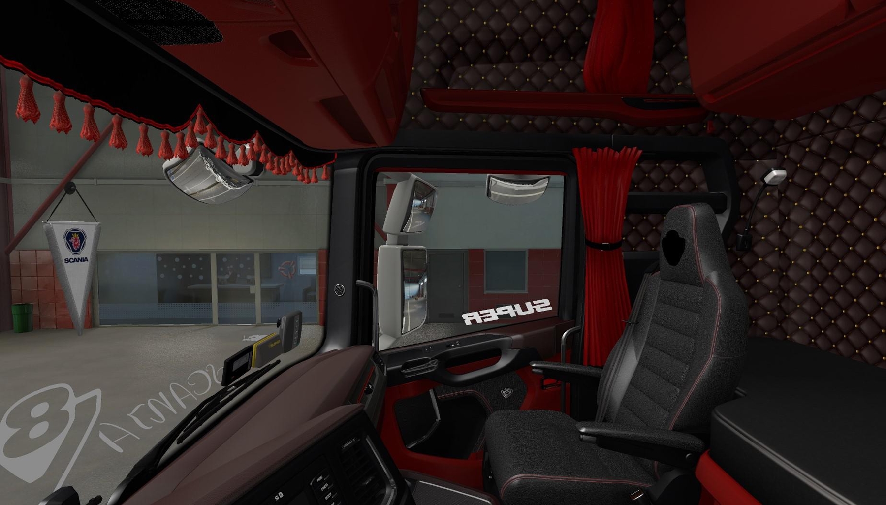 Black and red interior for scania S Tested on 1.38.x version Author: kRipt Credits: kRipt |