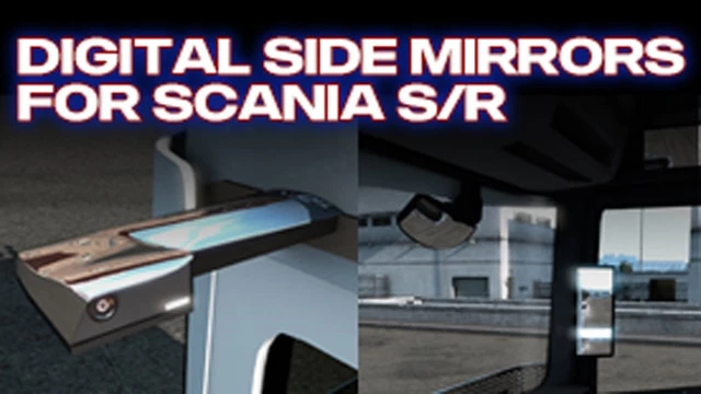 This mod adds Actros-style digital side mirrors and monitors to the left and right mirrors of the SCANIA 2016. For vanilla SCANIA S/R ONLY! Credits: Darling |