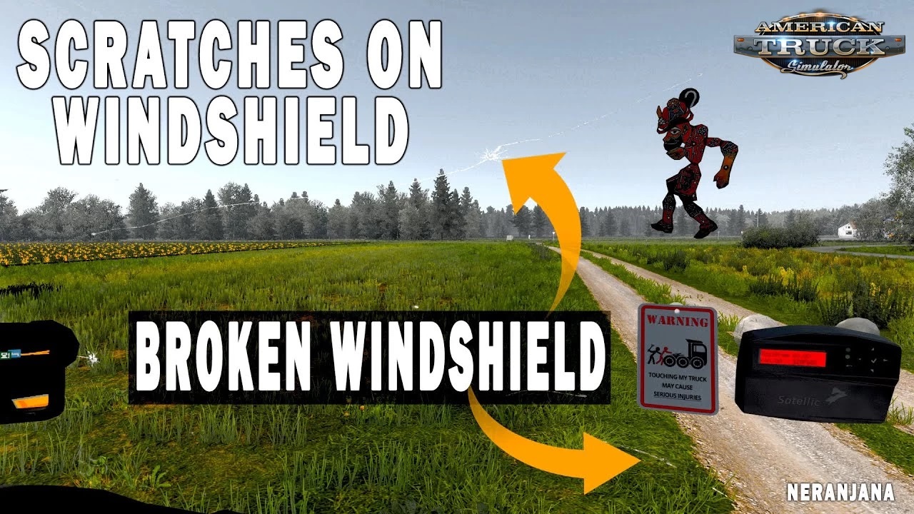 Scratches on Windshield - this mod will give you the opportunity to scratch the windshield of your truck, which will give a certain realism. These are scratches, not cracks, so the mod is made in an unobtrusive style and represents a kind of experiment. As a locator for modification, the locator responsible for the projection of drops on the windshield was chosen. Do not worry, the rain remained in place, wipers work like watches (I myself was surprised). Therefore, this mod does not occupy any of the slots reserved for accessories of the interior. Purchased for $1 at the store. Changes in v2.1: - Adapted to the latest game patch 1.43; - Added support for Freightliner Cascadia 2015; - Added support for Peterbilt 579 Next-Gen 2022 (by Frank Peru). Supported Trucks International 9300 (by KSW) Autocar AT\DC (by XBS) Freightliner Century\Columbia (by bshabdul, Riccosuave and others) Dodge CNT950 (by KSW) Ford Aeromax (Vladislav Williams) Freightliner 122SD (by Frank Peru) Freightliner FLD (by Harven) Freightliner Inspiration (by Felipe Conbar and others) Diamond Reo (by KSW) Mack Superliner (by KSW) International 9900 (by DN Modding) Kenworth K100E Kenworth T610 (by GTM) Kenworth T810 (by GTM) Kenworth T2000 (by Aleksandr Sentyakov) Kenworth W990 (by Frank Peru) Mack CHU613 (by Frank Peru) Marmon P57 (by Renenate) Peterbilt 367 (by GTM) Mack Pinnacle CXU613 (by Stick64) Volvo VNL 2018 (by Frank Peru) Western Star 5700XE (by Stick64) Brockway 761 (by KSW) Peterbilt 352 (by KSW) Mack F700 Ford 9000 (by Blade) Freightliner Coronado 132SD/122SD Freightliner Coronado (by mTG) Freightliner FLB Freightliner Cascadia 2015 (version 2.1) Western Star 4900 (by Blade) International 9600 International HX520 (by Harven) Kenworth T680 Next-Gen 2022 (by Frank Peru) Peterbilt 579 Next-Gen 2022 (by Frank Peru) (version 2.1) Mack R Series Peterbilt 379 Peterbilt 387 Peterbilt 378 Volvo VNR (by Frank Peru) and more... in future ) Tested on game version 1.43.x Credits: Kororuz |