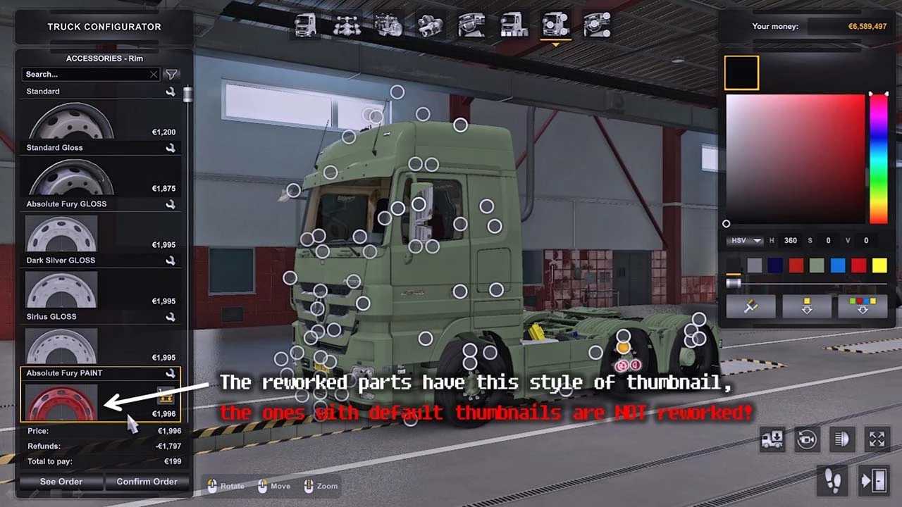 | This mod is a rework of the standard SCS wheels. A total of 125 models have been updated.