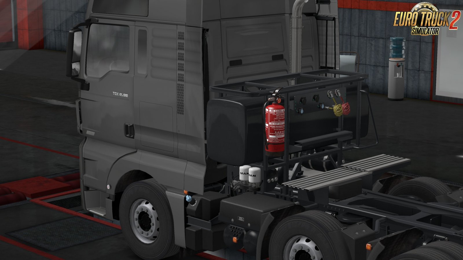 (New update 27.02.2019) New Changelog v1.1.00.09 ---> v1.1.00.27: - Added fire extinguisher on truck Volvo chassis 8x4 - Made localization in mod. Czech, German, English GB & US, Hungarian, Polish, Russian, Serbian Cyrillic and Latin - Correction in Hungarian - Correction *.sii file - Correction *.text file Description: The mod is represented by over 376 signs marking trucks in different categories country codes, speed limit, warning, ecology warning and others. *Only for standard trucks in game. Signs: 3 / 4 / 5 / 6 / E / E (yellow) / EEV / G / H / H (yellow) / IV / L / S / U / III / V / VI / R (yellow) / TIR / No TIR / T.I.R. / No T.I.R. etc. These signs are located at the front of the truck cabin. E = (Environment) or white letter "U" (Umwelt), denoting vehicle with a Euro-1 engine. EEV = Enhanced environmentally friendly vehicle (emission category between V and VI) is a term used in the European emission standards for the definition of a "clean vehicle" > 3.5 tonne in the category M2 and M3. The standard lies between the levels of Euro V and Euro VI. G = denoting Gerauscharm Fahrzeug (ie noiseless/quiet vehicle): German version of the Austrian "L" plate for use only on diesel vehicles meeting German low-noise requirements - similar to those for Austria as above. L = denoting Larmarm Fahrzeug (ie low noise vehicle): Austrian version of the symbol for quiet diesel vehicle which are:- small and medium-sized lorries of no more than 150KW producing noise levels no greater than 78dB.- heavy lorries exceeding 150KW with noise levels no greater than 80dB. S = (Sicher/safe) denoting a vehicle with a Euro-2 engine and safety features. 3 = denoting a vehicle with a Euro-3 engine and safety features. 4 = denoting a vehicle with a Euro-4 engine and safety features. 5 = denoting a vehicle with a Euro-5 engine and safety features. 6 = denoting a vehicle with a Euro-6 engine and safety features. A = required in Germany on all vehicles carrying waste. R (yellow) = The truck has route approval, for ex. heavy transport. (used in Austria). H (yellow) = The truck has higher gross vehicle weight, for ex. heavy transport. (used in Austria). E (yellow) = The truck has restricted gross vehicle weight. Tax benefits for it. (used in Austria). III - VI = European emission standards III-VI for HGVs (> 3.5 tonne). ______________________________________________________________________________ ADR signs: ADR / 22-1951 Argon Refrigerated Liquid / 22-1977 Liquid Nitrogen / 22-2187 Carbon Dioxide Refrigerated Liquid / 23-1965 Liquefied Petroleum Gas LPG / 23-1971 Methane Compressed or Natural Gas Compresed With High Methane Content / 30-1202 Diesel / 30-1223 Kerosene / 30-1267 Crude Oil / 30-1300 Turpentine Substitute / 30-1863 Fuel Aviation Turbine Engine / 30-1999 Tars Liquid Including Road Oils And Cutback Bitumens / 33-1090 Acetone / 33-1203 Gasoline / 33-1219 Isopropanol (Isopropyl Alcohol) / 44-2448 Sulphur Molten / 80-1824 Sodium Hydroxide Solution / 80-1830 Sulphuric Acid / 80-2796 Sulphuric Acid (with Not More Than 51% Acid) / 86-2809 Mercury / 225-1073 Oxygen Refrigerated Liquid / 225-2201 Nitrous Oxide / 90-3082 Environmentally Hazardous Substance Liquid / Dangerous For The Environment / Flammable Materials / Flammable Materials 2 / Flammable Materials 3 / Flammable Solid Miscellaneous Goods Hazard Class 9 Material / Radioactive 1 / Radioactive 2 / Radioactive 3 / 30-1866 Resin Solution Flammable / 33-1866 Resin Solution Flammable / 30-1307 Xylenes / 33-1307 Xylenes / Infectious Material / Toxic Gases / Toxic Material / Corrosive Material / 99-3257 Elevated Temperature Liquid N.O.S. etc. These signs are located at the front of the truck cabin. For more information about ADR. Speed limit signs: 30 / 40 / 50 / 60 / 70 / 80 / 90. The combination of red white and yellow red with black numbers and white background with black numbers. These signs are located at the rear of the truck cabin. Country symbols: Austria, Belarus, Belgium, Bosnia and Hherzegovina, Bulgaria, Croatia, Cyprus, Czech Rrepublic, Denmark, Ex Yugoslavia, Ex East Germany, Ex Soviet Union, Estonia, France, Germany, Greece, Hungary, Island, Ireland, Italy, Latvia, Liechtenstein, Lithuania, Luxembourg, Macedonia, Montenegro, Netherlands, Norway, Poland, Portugal, Romania, Russia, Serbia, Slovakia, Slovenia, Spain, Switzerland, Turkey, United Kingdom, Botswana, Kazakhstan, Moldova, Tajikistan, Uzbekistan etc. These signs are placed at the front and at the rear of the truck cabin. CREATED FOR TRUCKS: -DAF XF * DAF XF EURO 6 -IVECO STRALIS * IVECO HIWAY -MAN TGX -MERCEDES ACTROS 2009 * MERCEDES ACTROS 2014 -RENAULT PREMIUM * RENAULT MAGNUM -SCANIA RCAB * SCANIA STREAMLINE * NEW SCANIA R * S -VOLVO FH 16 2009 * VOLVO FH 16 2012 THE MOD IS NOT INTENDED TO WORK WITH OTHER MODELS OF TRUCKS FROM THE AUTHORS: Ohaha, RJL, MDModder, Flemming V, davidzoli, AlexeyP, Pendragon, MrCapital etc! Credits: tobrago |
