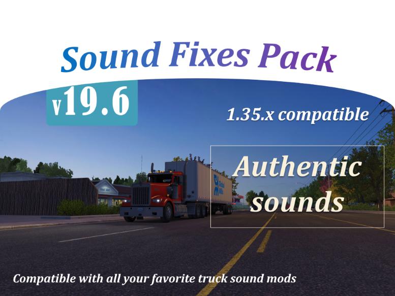 CHANGELOG 19.6 1 Cummins N14 engine sound brought back for Kenworth W900 in AI traffic (redone). [ATS edition] Finetuned interior suspension sounds. CHANGELOG 19.5 1 new real engine sound for MAN TGX Euro 6 in AI traffic. [ETS2 edition] Reworked Utilimaster step van engine sound for AI traffic. [ATS edition] CHANGELOG 19.4 Added Cummins ISX15 engine sound to array for Kenworth W900 in AI traffic. [ATS edition] 1 new CAT 3406B + 1 CAT 3406E engine sound brought back for Kenworth W900 in AI traffic. [ATS edition] 3 new real engine sounds + horn sound for Skoda Octavia's in AI traffic. [ETS2 edition] 2 new horn sounds for Tesla Model S in AI traffic. [ATS edition] 1 real engine sound brought back for Ford Mustang (5th generation: 2005 - 2014) in AI traffic. [ATS edition] 2 new real engine sounds for Ford Mustang (5th generation: 2005 - 2014) in AI traffic. [ATS edition] 1 new real horn sound for Ford Mustang (5th generation: 2005 - 2014) in AI traffic. [ATS edition] Brought back horn sound for Ford Crown Victoria in AI traffic. [ATS edition] Applied real engine sounds for tractor in AI traffic. [ATS edition] Compatibility update for 1.35.0.103 * SCS Software for base sounds * Drive Safely for sound edits, some sound samples, and for compiling mod * antonvezdehod, Ludmilla and Katixa/Irreo for some tire sounds * Balamut for some key swing and light suspension sounds * AlexeyP for some trailer coupling, gate/barrier and fuel pump sounds, and sounds from Improved Environment Sound * cipinho for some AI traffic sounds * kriechbaum for light switch, blinker off, and high beam stick sounds Credits: Drive Safely, antonvezdehod, Ludmil |