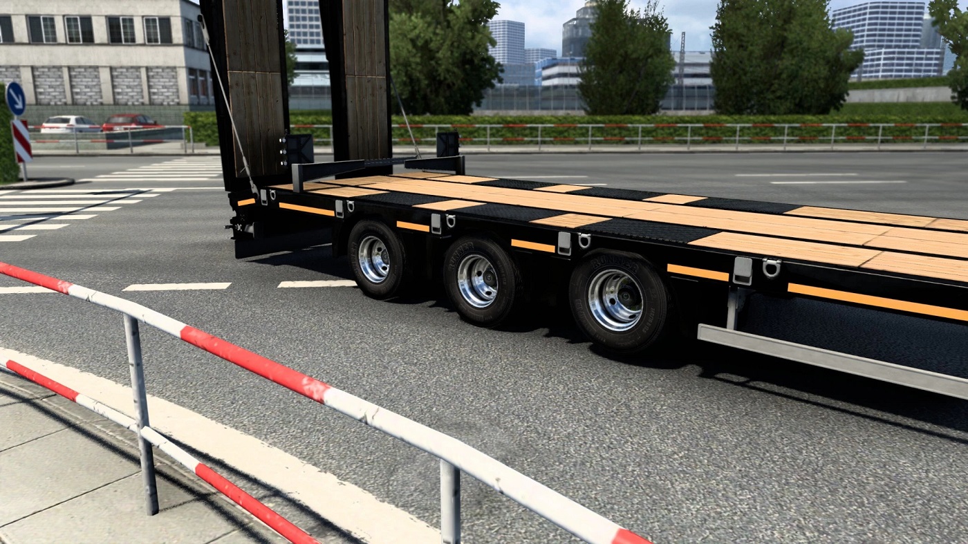 Two additional configurations for the ownable 3-axle lowbed trailer: Steerable – Middle and rear axle steerable, front axle fixed Liftable – Front axle liftable, middle and rear axle fixed Credits: Trandaa |