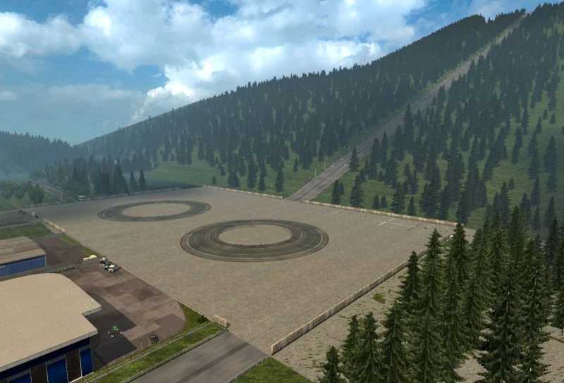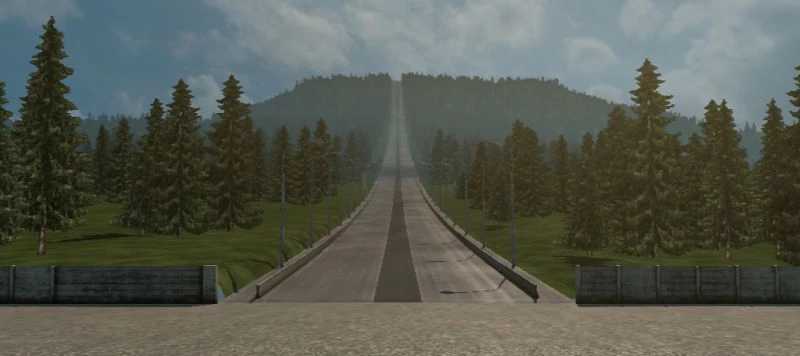 Test track for performance tests and to tweak physics parameters. Contains the following features: Skidpads Two multi-lane skidpads; one is flat, and the other one has a negative camber. The middle lanes of the pads have a radius of 40m, and can be used for testing rollover limits. Mountain Roads Two extreme mountain roads for testing brake fade. One road is straight, with a decline of nearly 40%, and a length of about 1.5km, the other one is curved, with a decline of 20%, and a length of about 3.5km. This allows bringing up the brakes to extreme temperatures, to test their fading behavior. Static Tip-Over Bank A straight bank, at different angles, allows the testing of static tip-over behavior, due to CG position and tire traction. Brake Measurements A straight and level braking area, with distance markers to determine brake performance. Speed Bumps Multiple speed bumps in a row allow chassis and suspension testing, as well as cargo damage. High-speed course A traffic-free track section, with long straights, as well as an exit ramp, allows testing of high-speed maneuvers. For v1.46/47 Credits Kronzky Credits: Kronzky |