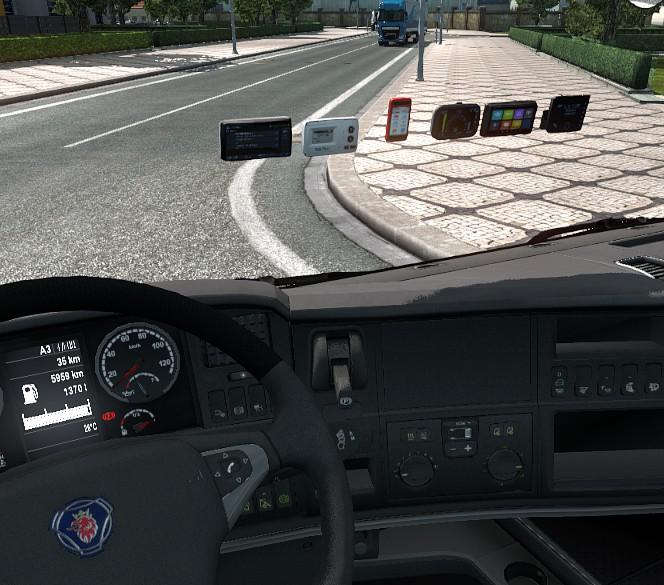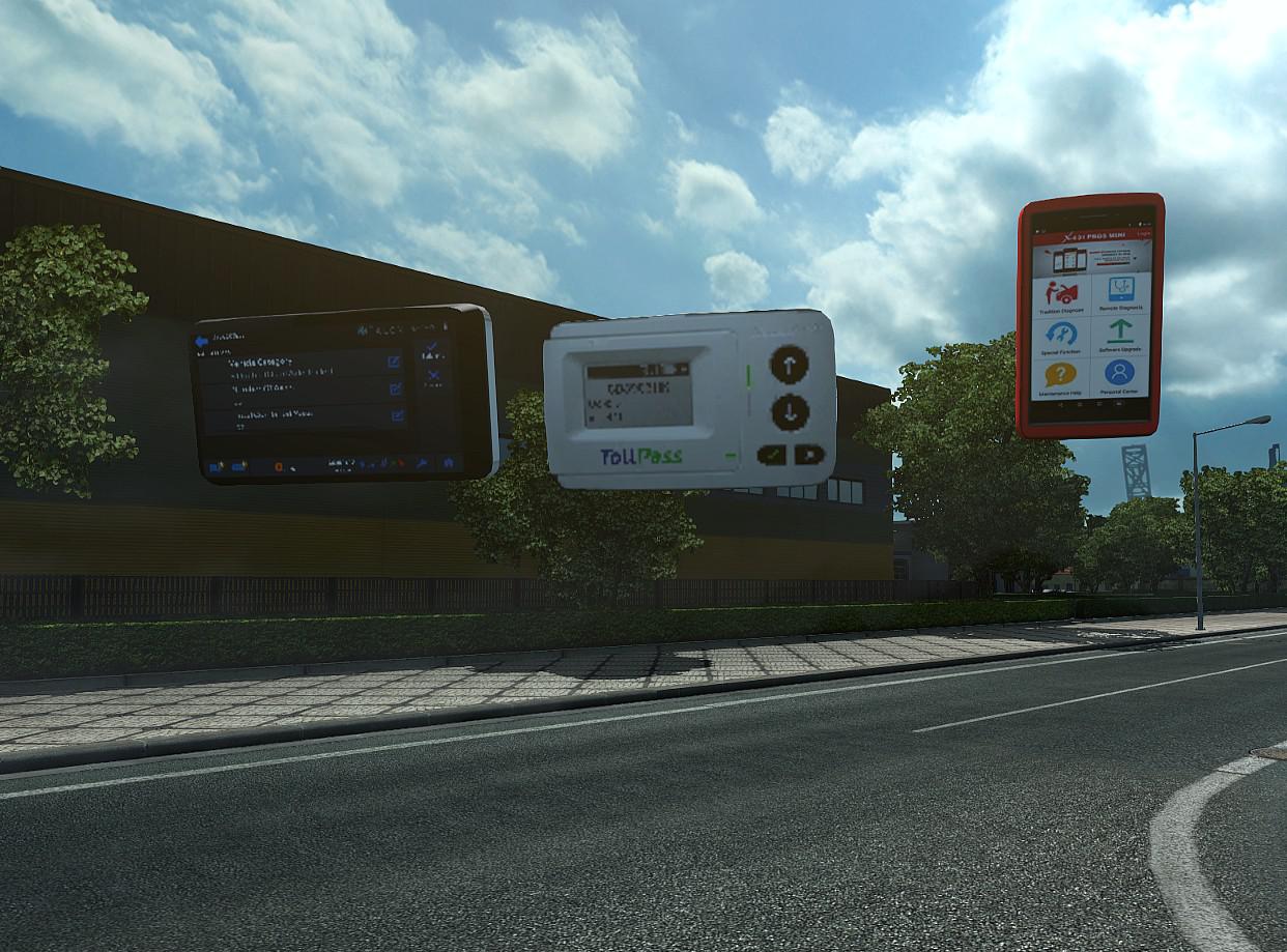 (All of these devices work) * toll pass device * x431 pro launch * HD Pro Tab * road explorer(rand mcnally ) * gps * telefon name (bury ) * speedometer ( ket GAUGE ) This mod add electronic devices for toll in any Euro Truck Simulator 2 country. You can find it in pendants set ViaToll for Poland Premid for Czech Republic Telepass for French, Italy, Austria, Spain and Portugal OBU 1374 for Slovakia Satellic for Belgium DarsGo for Slovenia Platon for Russia Beltoll for Belarus Tollcollect for Germany and Austria Gobox for Austria UTA One for Belfium, Germany, Austria, Spain, France, Portugal and Italy DKV Box for Belfium, Germany, Austria, Spain, France, Portugal ZMPD Box: Belfium, Germany, Austria, Spain, France, Portugal Credits: jime , hmouz , freck Credits: jime , hmouz , freck |