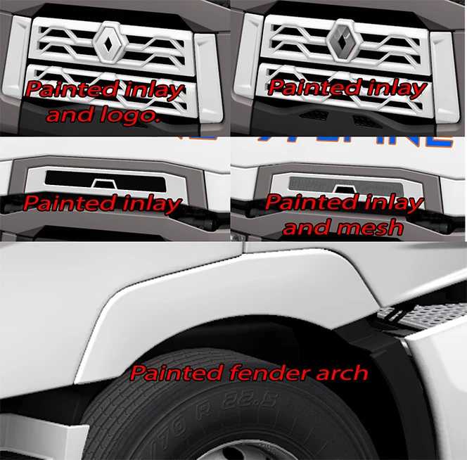 Changelog Fixed errors associated with front bums and front wings Scania NG Woman logo has been added in chrome and paint for MAN E6 for fun This mod contains additional parts for SCS trucks. This pack was previously the Scania Accessory Pack but has started to include other truck stuff. Includes: – Bumpers; – Mirrors; – Visors; – Grills; – Horn; – Lights; – And other details. Credits: Mohegan13, IJsmods |