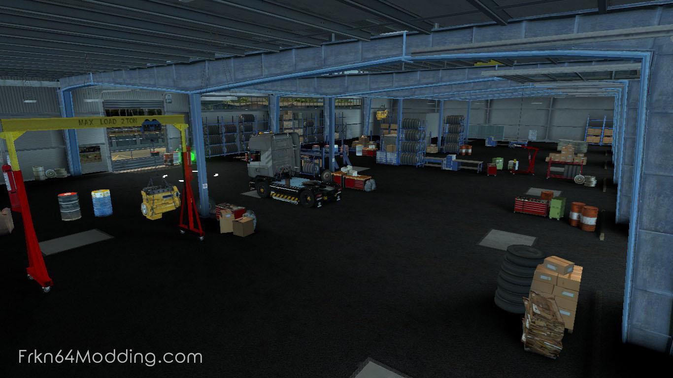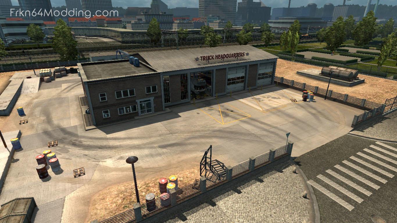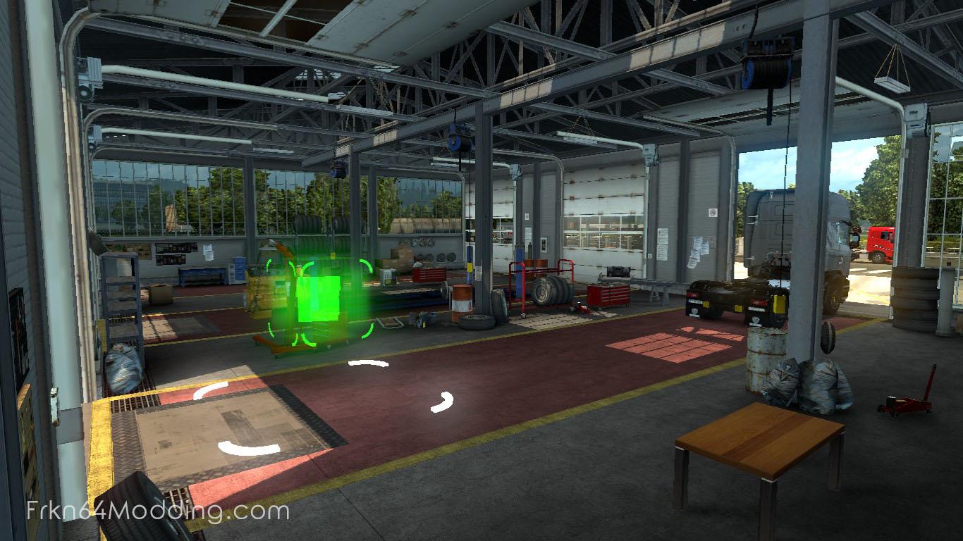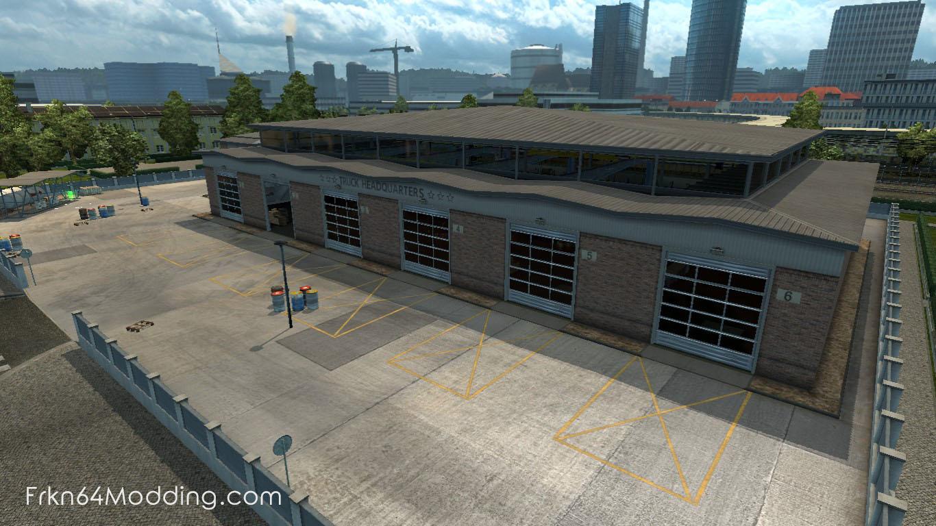 FEATURES This mod replaces the standard garages with Truck Headquarters garage from the American Truck Simulator. UPDATE NOTES v1.2 released. Changes; – Now compatible with update 1.32. REQUIRED GAME VERSION v1.32.x Credits: Frkn64 Modding |