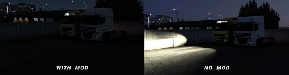 | A small fix that plays a big role and creates a realistic and comfortable atmosphere for being in the game. The modification corrects a bug in truck lighting when side lights are displayed as low beams. Works in both single-player and convoy modes