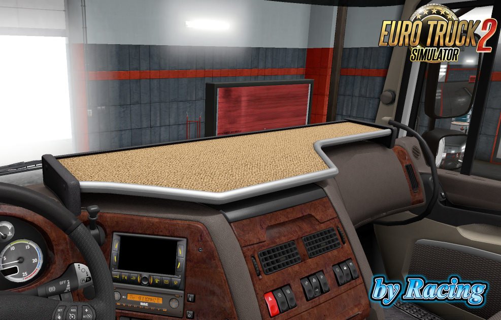 Truck Tables v4.0 by Racing for Ets2 1.30.x game version *Required cabin accessories dlc New version 4.0: tables for Renault Premium – uk variants for Renault Premium – uk variants for Scania S & R *If you want use tables for Iveco Stralis you must install “Iveco_Stralis_Addon”. In shop select suitable cabin and interior variant calls “cabin/interior name” Truck Tables. Features: – mod contains truck tables for Daf XF 105, Daf XF Euro6, Iveco Hiway, Iveco Stralis, Man TGX, Renault Magnum, Scania R & Streamline, Scania S & R, Volvo FH 2012, Volvo FH 2009, Mercedes Actros MP3, Mercedes Actros MP4 – mod also support Scania RJL, MAN by Madster and Volvo FH 2012 by Ohaha. To work for other modding trucks, just add correct definitions. – table for Iveco Hiway work only with interior from my mod Iveco Stralis XP & NP by Racing. Original model don’t have “set_dashbrd” node. – if you want to change color of leather or carpet material, you can choose texture from /vehicle/truck/upgrade/interior_set/share/textures rename it, and use it instead of original file. You can also prepare your own texture. – tested on Ets2 1.30.x game version. Available table configurations in actual mod version: Daf XF 105: short and long table Daf XF Euro6: short and long table Iveco Stralis Hiway: short table Man TGX: short and long table Renault Magnum: short and long table Renault Premium: short and long table eu and uk versions Scania R & Streamline: short, long and high (with drawer) table Scania S & R (2016): short table, long table (short with passenger table) eu and uk versions Volvo FH 2012: long/high (with drawer) table Volvo FH 2009: short and long table Iveco Stralis: short and long table Mercedes Actros MP3: short and long table Mercedes Actros MP4: short and long table In next versions of this mod i will add tables for rest of the trucks, but i don’t plan to add every variant to every truck. Tested on Ets2 1.30.x game version x64 with DirectX Credits: Racing, SCS Software Credits: Racing, SCS Software |