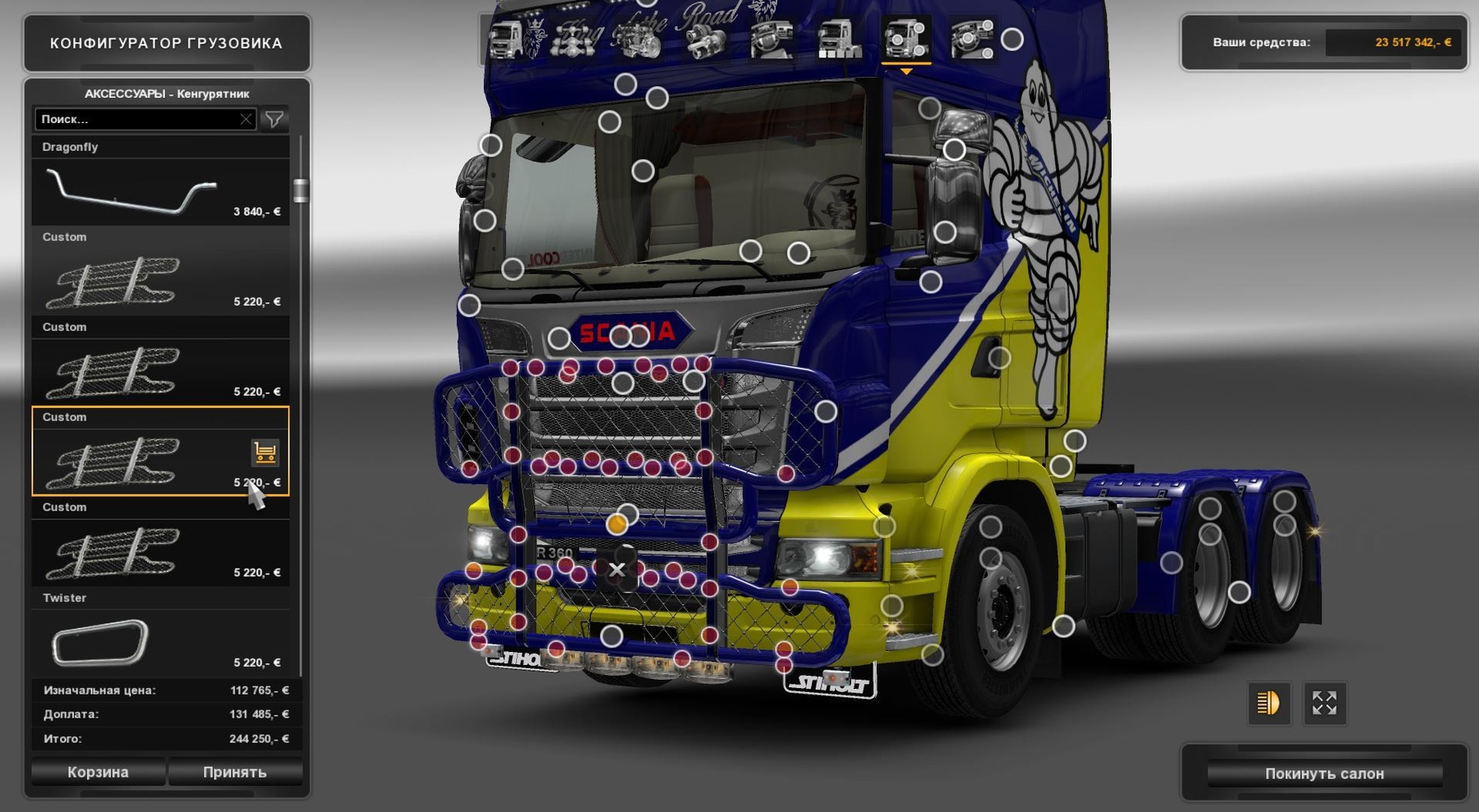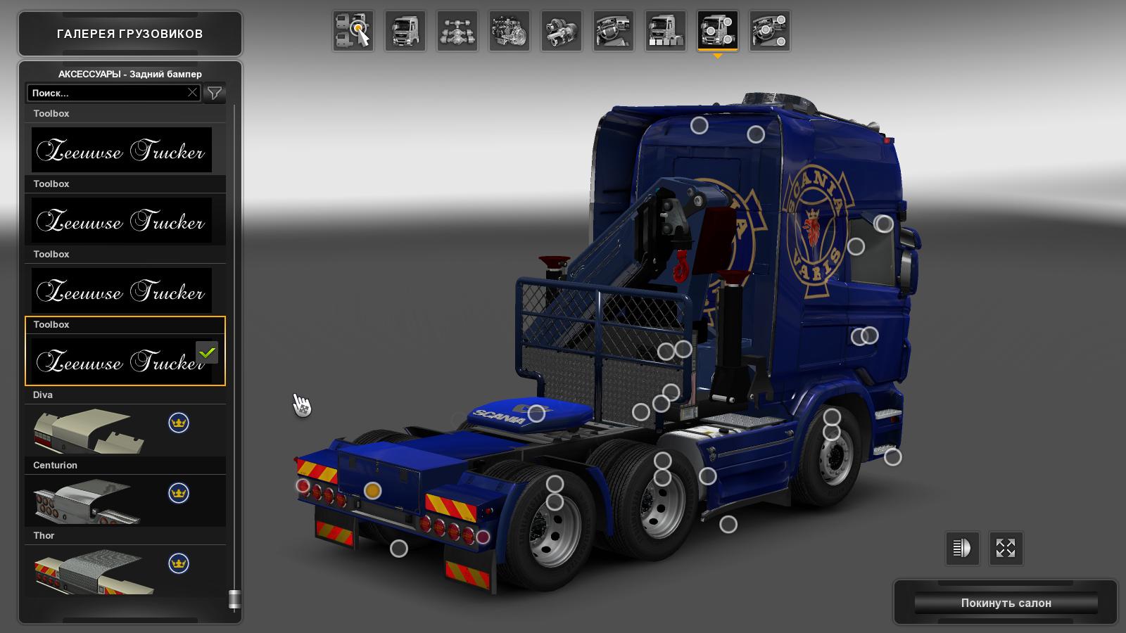 Mod alters DEFAULT Scania R. Adds: - Additional many tuning - Additional chassis - Additional interiors - Additional steering wheels - additional tuning & accessories - Support All DLC Changelog Update for 1.31, 1.32 Zeeuwse Trucker. SCS.RJL. P8-Powerkasi. Team-Poland. Piva. Longlinerv8. 50Keda Credits: Zeeuwse Trucker. SCS.RJL. P8-Powerk |