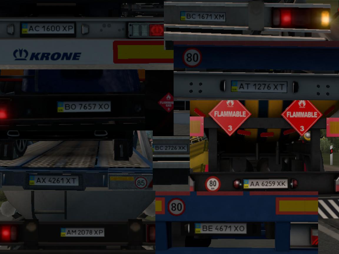 This package contains reworked license plate for Ukraine. – Original license plates ’04-’20 years for all types of vehicles. – Rare license plates ’95-’04 years for some AI cars. – Fixed regional ID encodings for Zakarpattya region & five neighboring regions. – Uzhhorod & Mukacheve vehicles have individual “AO” identifier. – Fixed encodings of license plates for trailers. Now they have ID-codes “XX; XT; XP; XM; XH” after 4-digits combination. – Fixed police license plate – white digits on blue background. Credits: Alexx_Os Credits: Alexx_Os |