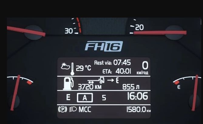 This mod improves Volvo FH 2009 dashboard: – based on “Volvo FH16 2009 Realistic Dashboard Computer” from Oscar – added low beam icon – added current speed value indicator on all screens – added current cruise control speed value indicator on all screens – added cruise control memory icon – added ETA (estimated time to arrival) indicator, hidden when time is not available (no delivery, no navigation etc.) – added time until rest is needed indicator, hidden when fatigue option is disabled – fixes and improvements Credits: Oscar, KnightRider |