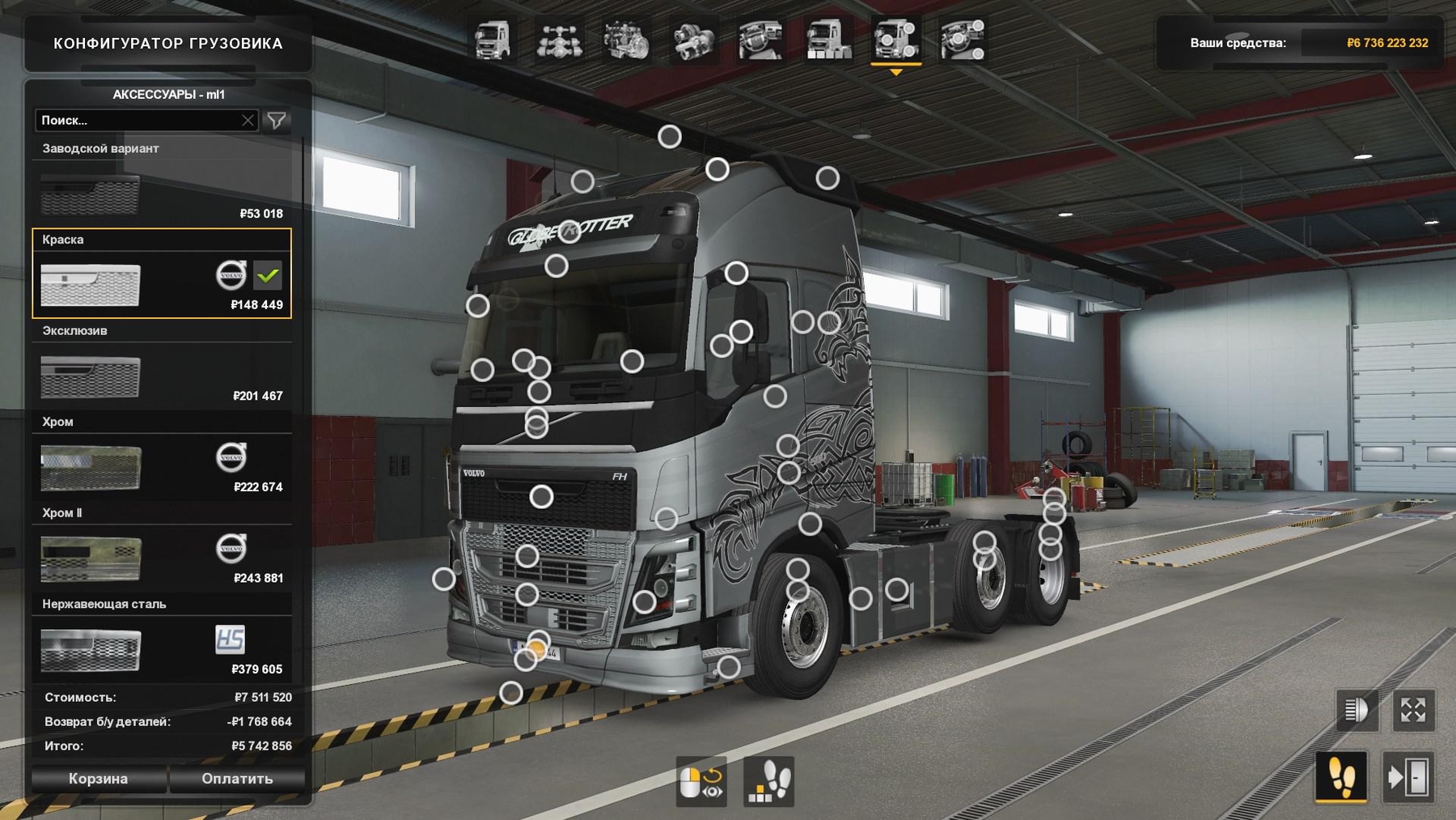 The modification slightly expands the possibilities of tuning VOLVO trucks. You need to buy in a single game, you can modify and repair it in Truckers MP. Different parts of the front grille Different parts of the front wing Different rear wing options Different versions of skirts Different options for metal flooring Side pipes without skirt Cabs with a short spoiler Ability to withdraw: - rear wings - rear mudguards - curb mirror - steering wheel - metal flooring Credits: Belka647 |
