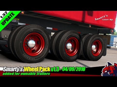 Changelog 1.3 Adaptation for ETS2 Wheels of trailers are added for own trailers Added new tires for trucks (HA3, G661 HSA) Redesigned hubs (improved appearance, 3 options, aluminum, matt / glossy appearance); Added a new tire, the Continental HDR2 11R22.5. This mod contains an assortment of wheels and tires, currently with a focus on mixed-service applications. It will be updated with additional wheels, tires and accessories as they are completed. Contents Wheels - Accuride 22.5 x 12.25 steel (dull, gloss, chrome) - Accuride 22.5 x 8.25 steel (dull, gloss, chrome) - Alcoa 22.5 x 12.25 (dull, polished, chrome) - Alcoa 22.5 x 8.25 (dull, polished, chrome) Tires -Michelin XZY3 385/65R22.5 -Michelin X Works XDY 11R22.5 -Goodyear G296 MSA 425/65/R22.5 -Goodyear G177 11R22.5 -Goodyear G395 11R22.5 -Goodyear G372A 11R22.5 -Goodyear 661 HSA 11R22.5 -Continental HDW 11R22.5 -Continental HA3 11R22.5 -Continental HDL2 11R22.5 Trailer Wheels (requires compatible trailer mods) -Michelin X One Multi Energy T 455/55R22.5 on Alcoa 22.5 x 14 -Goodyear G314 285/75R24.5 on Alcoa 24.5 x 8.25 -Goodyear G314 285/75R24.5 on Accuride 24.5 x 8.25 2-hole -Goodyear G104RST 275/70R22.5 on Accuride 22.5 x 7.50 5-hole -Goodyear G661HSA 11R22.5 on Alcoa 22.5 x 8.25 Compatible Trailer Mods The wheel pack must have higher priority in the mod manager than these trailers in order to override the wheels SmithCo Side Dump by Dogebilt Fontaine Phantom by Smarty Fontaine Magnitude by Zetor165 Utility 2000R by Smarty Trailmobile SuperVan 90 by Smarty Tremcar 3A Sanitary by Smarty Eager Beaver 50 GSL/BR by Smarty (still WIP) Credits: Smarty |