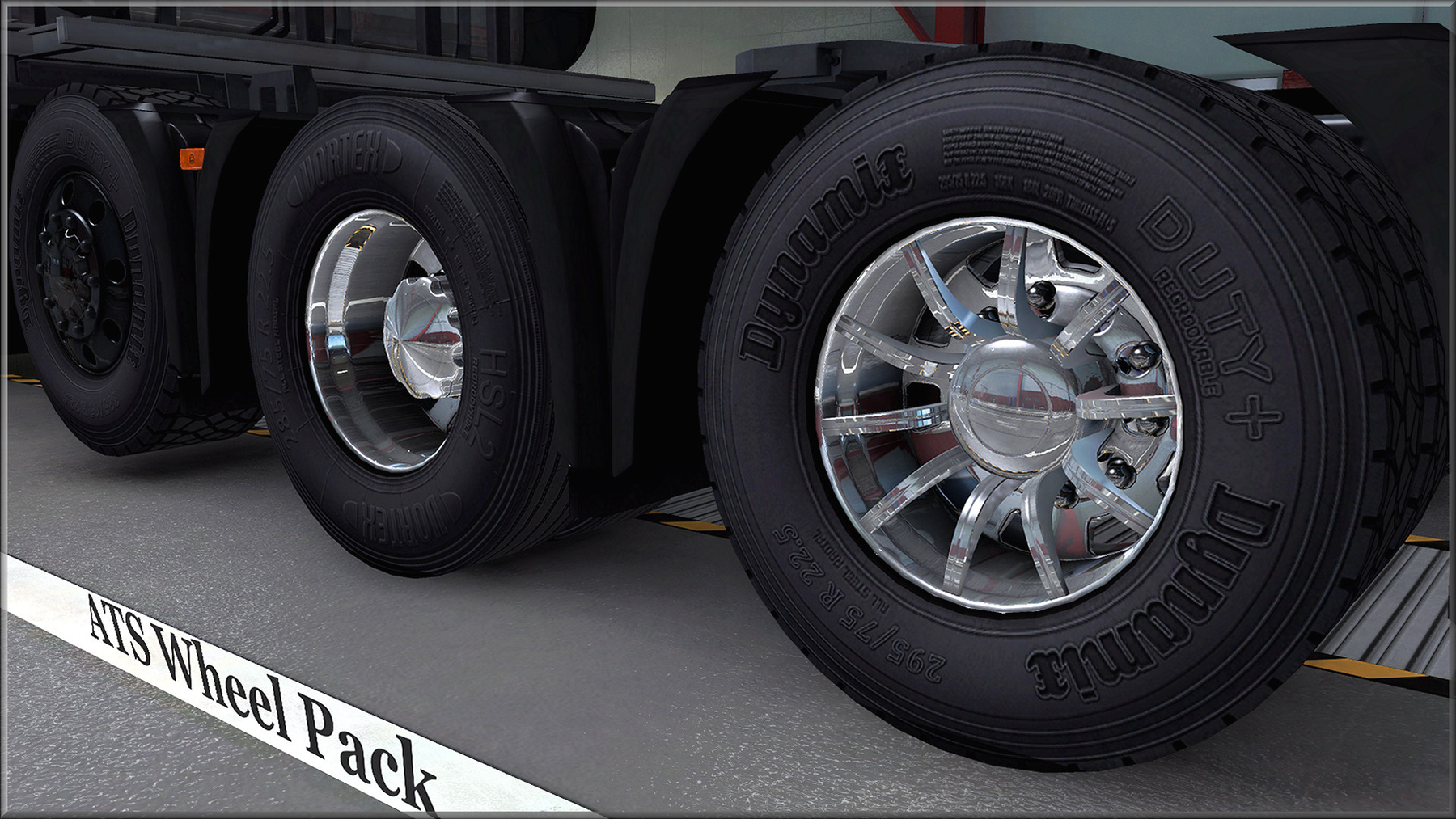 Wheel pack from ATS for ETS2. Attention! Wheel settings in this mod are changed (adapted) for ETS and it will not work correctly in ATS. Credits: SCS,YuriI |