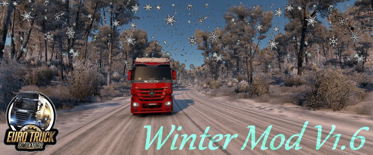 Winter Mod - this modification adds winter season for ETS2 players. Snow-white, snow on all objects of the environment creates a pleasant winter atmosphere. The winter mod for Euro Truck Simulator 2 from the author of Black Dragon fully implements the cold season by replacing the textures of the surrounding world, the implementation of new weather conditions and rainfall in the form of snow. In addition, the developer prescribed the characteristic physics of transport behavior. Features Winter Mod: - Winter around the world of the game; - Supported by DLS Baltic Sea; - New road textures; - New snow on the glass; - New trees and grass; - Real winter temperature; - Slippery roads. Changes in v1.6: - Adapted to the latest game patch 1.43; - Compatible with all DLCs; - 3D snow on your own truck, trailer and traffic cars; - New physics; - Snow on tires; - Fixed bugs. Tested on game version 1.43.x Credits: Black Dragon |