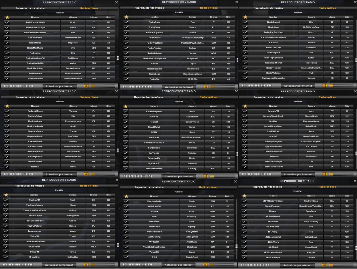 Mod WORLD RADIO STATIONS V14 for EURO TRUCK SIMULATOR 2 800 radio stations from different countries and musical directions Credits: Maryjm |