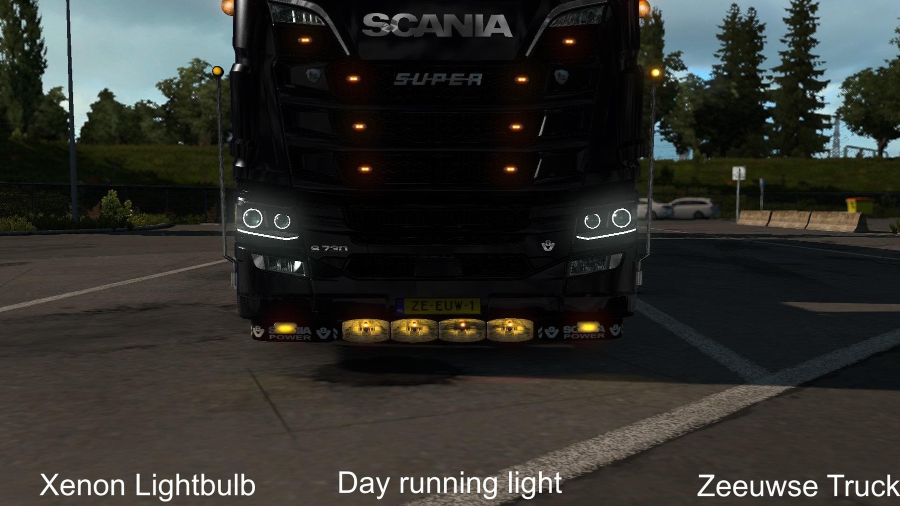 Hello, a small mod i like to share. Xenon lightbulb for Scania R/S 2016. No replacing of lights, put light in front of existing lights. with shades, work on the V8 logo on the side of the cabin. with day running light. hope you like it. greetz Zeeuwse Trucker paypal.me/zeeuwsetrucker Credits: ZT Credits: ZT |