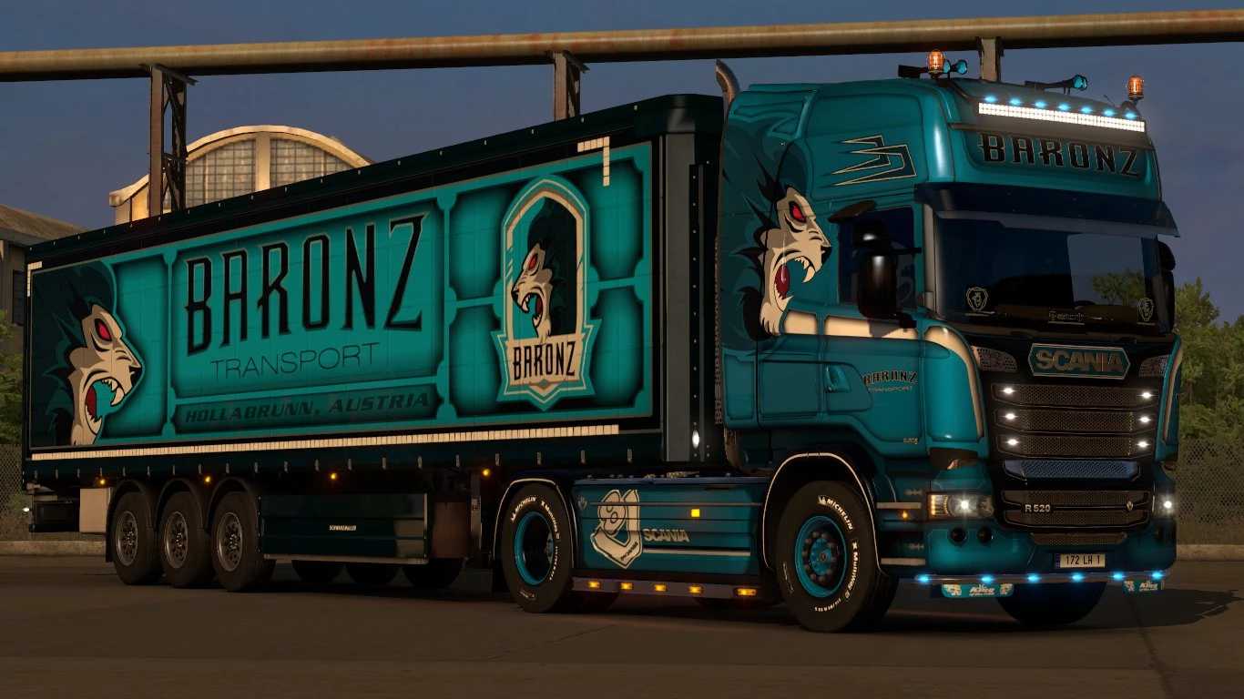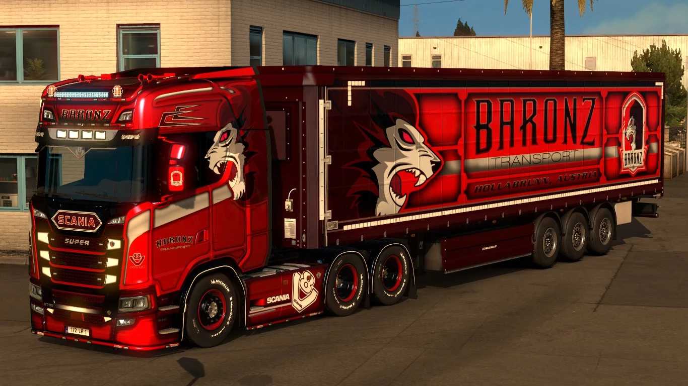 Skins for: RJL’s Scania R Topline Cab SCS Scania NG S high Cab SCS Scania Streamline Schwarzmuller DLC and Kogel Cool Maxx Credits: Baronz |