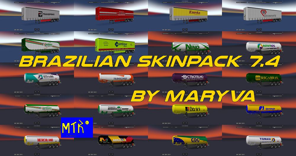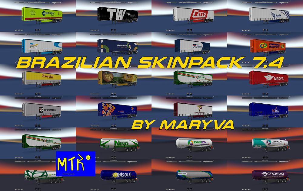 This mod changes the game for companies in the Brazilian and multinational companies in Brazil. Tested on version 1.47.x. Classic Company: Brazilian Companys: BCP – Transporte Bendini – EuroAcres – JSL EuroGoodies – Sedex FCP – Mila Transportes ITCC – Aqces Transportes KAAFOR – Negrelli Transportes LkwLog – SADA NBFC – Ipiranga Posped – Ritmo Logistica Sanbuilders – Axon Transportes Sellplan – Confiança Transportes Scout Cars – Horizonte Logística e Transportes Stokes – Expresso Rodominas Tradeux – Itapemirim Cargas Trameri – Fedex Express Transinet – Eureka Transportes Urgentes Treeet – Tora Transportes Industriais Ltda. WGCC – Shell Quarry DLC Scandinavia: Company North: Agronord – Brilhante Transportes Aria – Treméa Transportes BHV – Tegma Logística Bjork – Painel Transportes Container Port – Santos Brasil Logística DrekkarTrans – ID Logística GNT – Expresso Mirassol IKA Bohag – Godoy & Batistella Operador Logístico Konstnorr – Multipla Logistica e Transportes Ms Stein – Votorantim Nordic Crown – Tazlu Transportes Nordic Stenbrott – Gerdau Norrfood – TRD Transportes Norrsken – Salvador Operador Logístico Ns Chemicals – Transportes Transdupla Ns Oil – Niquini Transportes Polar Fish – Maynard Transportes Polaris Lines – Maroni Transportes Renar Logistik – SAT LOG Transportes SAG & TRE Sawmill – Tozzo Transportes Scania – Scania Vitas Power – Transnovag Transportes Volvo – Veneto Transportes VPC – Quick Logística DLC France: Company France: Batisse – Ouro Verde Transportes BHB Raffinerie – RG Log Transportes Boisserie – Eldorado Brasil Chimi – Time Express Logística e Transportes Dans Le Jardin – Marvel Transportes – Bonduelle FLE – Grupo Ambipar Gallia Ferries – Marimex Inteligencia Portuária Globeur – Braspress Transportes Gomme Du Monde – CargoLift Transportes Huilant – Gafor Logística Lisette Logistic – Luft Logística MVM Carrière – Pacer Logística Nos Páturages – Rio Lopes Transportes Nucleon – Soliman Transportes Renault – Renault Port De Conteneur – Login Logística Intermodal Subse – Cootravale Transportes – Danone Alimentos Voitureux – TSV Transportes Rápidos Wilnet Transport – Jamef Transportes ECO – Sim Distribuidora DLC Italia: AAA – Diamante Transportes AAC – Brasil Novo Logística ACI – West Cargo Transportes Cantiere Navale – Tempus Cargas CargoTras – ALL América Latina Logística CDE SRL – Expresso Nepomuceno Cesare Smar-VVLog – Via Varejo Logística CMT – Real 94 Transportes CNP – Cesari Transportes Costruzi Hal – TransPrimo Transportes Eolo Lines – Santos Brasil Logística Exomar – Fontanella Transportes Fattoria Food – Catto Transportes Fui Spa – Binotto Transportes Libellula – Embrisa Transportes Plac – OTD Brasil PP Chimica – TPN-Transportadora Primeira do Nordeste SAL – Dachery Transportes Spinelli – Jadimo Transportes TE Logística – Golden Cargo Transportes Tesore Gust – Martin Brower Transportes Trans Mediterraneo – Coopercarga Logística DLC Baltic: Baltic Companys: Aerobalt – Rápidão Cometa Agrominta – TGA Logística Ateria – Rigon Transportes Baltomorsk – Tesba Transportes BLT – Pacifico Log BLT Yacht – GT Express BLT Metal – Transpanorama Cemeltex – Happening Logística Domdepo – Stillo Transportes EE Paper – Itaobi Transportes Egres – Lunardi Transportes Eviksi – WH Log – Aurora Alimentos Fintyre – Sequoia Logistica IBP – Metatron Express Kivi – Destak Transportes – Riuma Mineração Ladoga – Transportadora Zimmer Lateds – Pozzer Transportes Lintukainen – Gral Transportes LVR – Transportadora Rocha NCH – Campinense Transportes Nosko – Rota Sul Transporte de Cargas Onnelik – Pepsico Transportes Radus – Circulo Transportes e Logística Renat – Spolier Transportes Rosmark – Bellaver Transportes Sal Fi – Rápido 900 Suprema – Expresso Petrolina Ukko – Comando Diesel Viljo Paper – GTI-LOG Transportes Viln Paper – Translecchi Transportes Zelenye – JadLog Transportes Russian Companys: Aerobalt – Transportadora Jolivan Baltomorsk – Minuano Transportes BLT – Della Volpe Transportes BLT Yacht – Estrela Transportes BLT Metal – Unidão Transportes Domdepo – Cruzado Transportes Fintyre – TW Transportes IKA Bohag – Vinhedos Transportes Kamen – Tecmar Transportes – Ladoga – Reiter Log Transportes NCH – Brascargo Transportes Ns Chemicals – Lemar Transportes Ns Oil – Dellmar Transportes PK Medved – Transrodace Transportes Radus – Transduarte Transportes Rosmark – Transportes Silvio Severoatm – Terra Nova Transportes Suprema – Favorita Transportes Other Companys (TANKS): ACC – TPF – Transportadora Porto Ferreira BCP – Cotrag Transportes BHB Raffinerie – ALP Transportes CargoTras – União Transportes e Logística CNP – Cesari Transportes Exomar – Atrevida Transportes Fattoria – TransKompa Transportes ITCC – Aqces Transportes LkwLog – Trelsa Transportes Posped – Contatto Transportes PP Chimica – Ultracargo Transportes SNP – Hungaro Transportes Stokes – Raizen Distribuidora TE Logística – Anamar Transportes Tradeux – ALE Combustíveis Transinet – Transal-Transportadora Salvan Trans Mediterraneo – Coopercarga Logística Wilnet Transport – Salvador Operador Logístico DLC Road To The Black Sea: Balkan Loco – Brasil Maxi Logística Baltrak – Rodojacto Transportes Brawen – Transportes Excelsior Dobr Ferm Bg – Brasnica Frutas Tropicais Dulcis – BBM Logística – General Motors Fallow – Tecadi Operador Logístico Imp Otel – Giovanella Transportes Kolico – Cavalinho Transportes – Coca Cola Lognstick – Real Cargo Transportes Low Field – Cootravale Transportes Ocean Sol – TNT Mercurio Transportes Rimaf – Log Frio Logística Rock Eater – Transportadora Trans Siri Rump – Support Cargo Transportes SCS Paper – Joanini Transporte