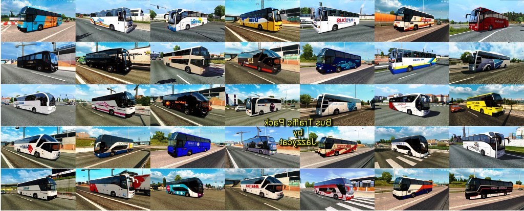 Pak adds 28 new bus models with 348 skins to the traffic (Setra, Neoplan, Volvo, Man, Mercedes-Benz, Ikarus, Ayats, Irizar, Temsa, Jelcz, Caetano). Everything is spelled out separately, nothing replaces. Works on any maps. It was tested on the version 1.28.х Compatible with all my packs. Credits: Jazzycat |