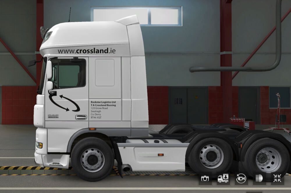 | This is a skin for SCS DAF, the skin has been made from crossland.ie which is a bus touring company, a trailer skin has also been made and will be released shortly. A bus skin will be released soon alongside a newer DAF XF model.