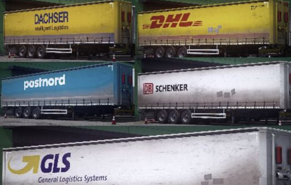 This mod adds 5 new dirty skins of 5 companies: -DHL -Dachser -DB Schenker -Postnord -GLS Hope you will enjoy! Version: 1.0 Tested on: 1.36.x and 1.37 Credits: DomiPromi NO DLC REQUIRED Credits: DomiPromi |