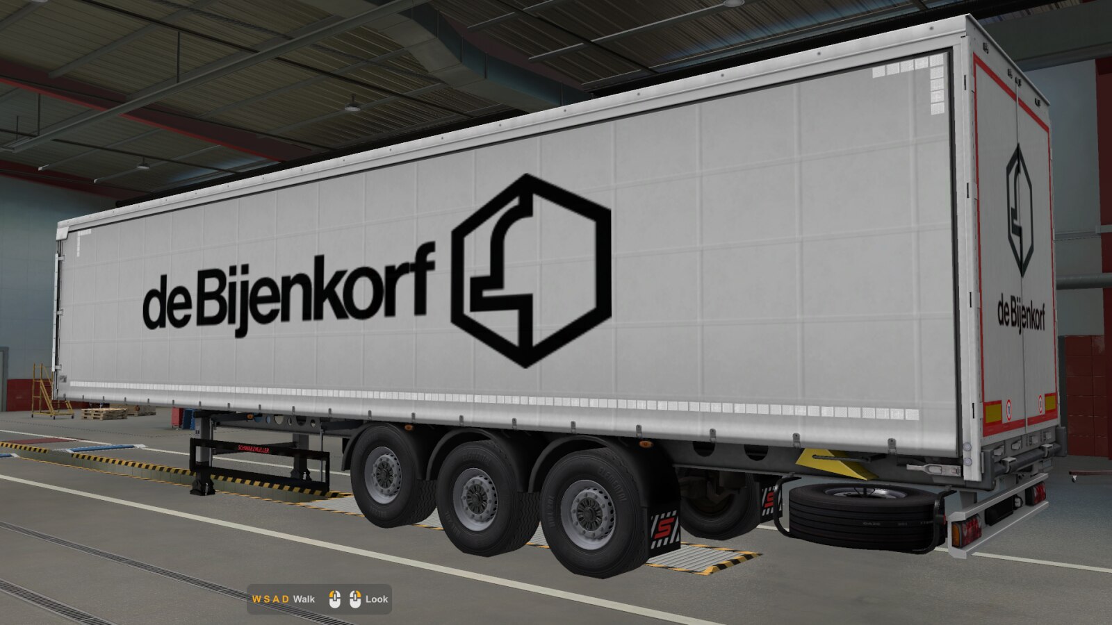 A pack of skins for ownable SCS standard trailers, Schwarzmüller Platform & Krone Profi Liner of Dutch retail companies. Including: Zeeman, Woon Express, Aktiesport, Hema, Trekpleister, Leen Bakker, Etos, de Bijenkorf, Kruidvat, Miss Etam, Kwantum, Action, Blokker, C&A & Gamma. - SCS trailers available for dry freight, insulated & refrigerated - SCS trailers available for single, double, B-double & HTC - Krone Profi Liner trailers requires DLC - Schwarzmüller Platform requires DLC Credits: Kerias |