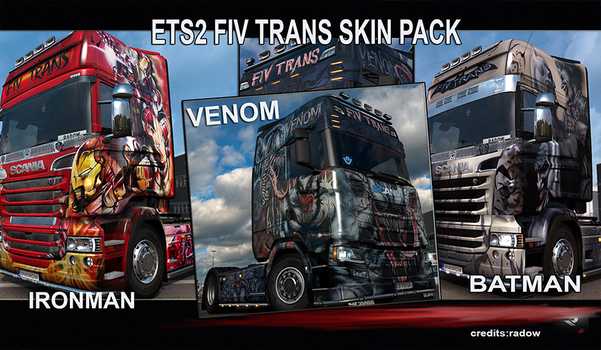 VENOM FIV TRANS SKIN FOR SCANIA S -all you need for this is in file download BATMAN SKIN AND IRONMAN SKIN IMPORTANT:VERSION UPDATE TO 1.47 Credits: – RADOW Installation (easy): – unpack the archive and put scs file in to My DocumentsEuro Truck Simulator 2mod – and activated Enjoy Credits: radow |