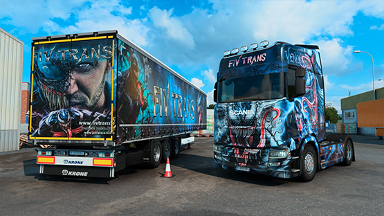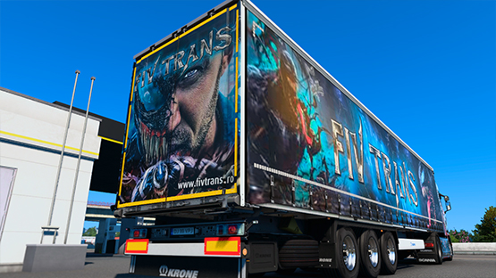 ETS2 FIV TRANS SKIN PACK_vers 1.49 -Venom FivTrans Scania S Skin -Venom FivTRans Krone Trailer (for more realistic need DLC Krone Trailer) install : unpack the zip file and put all scs and zip file in mod folder/Euro Truck Simulator2 Enjoy! Credits: radov Credits: radov |