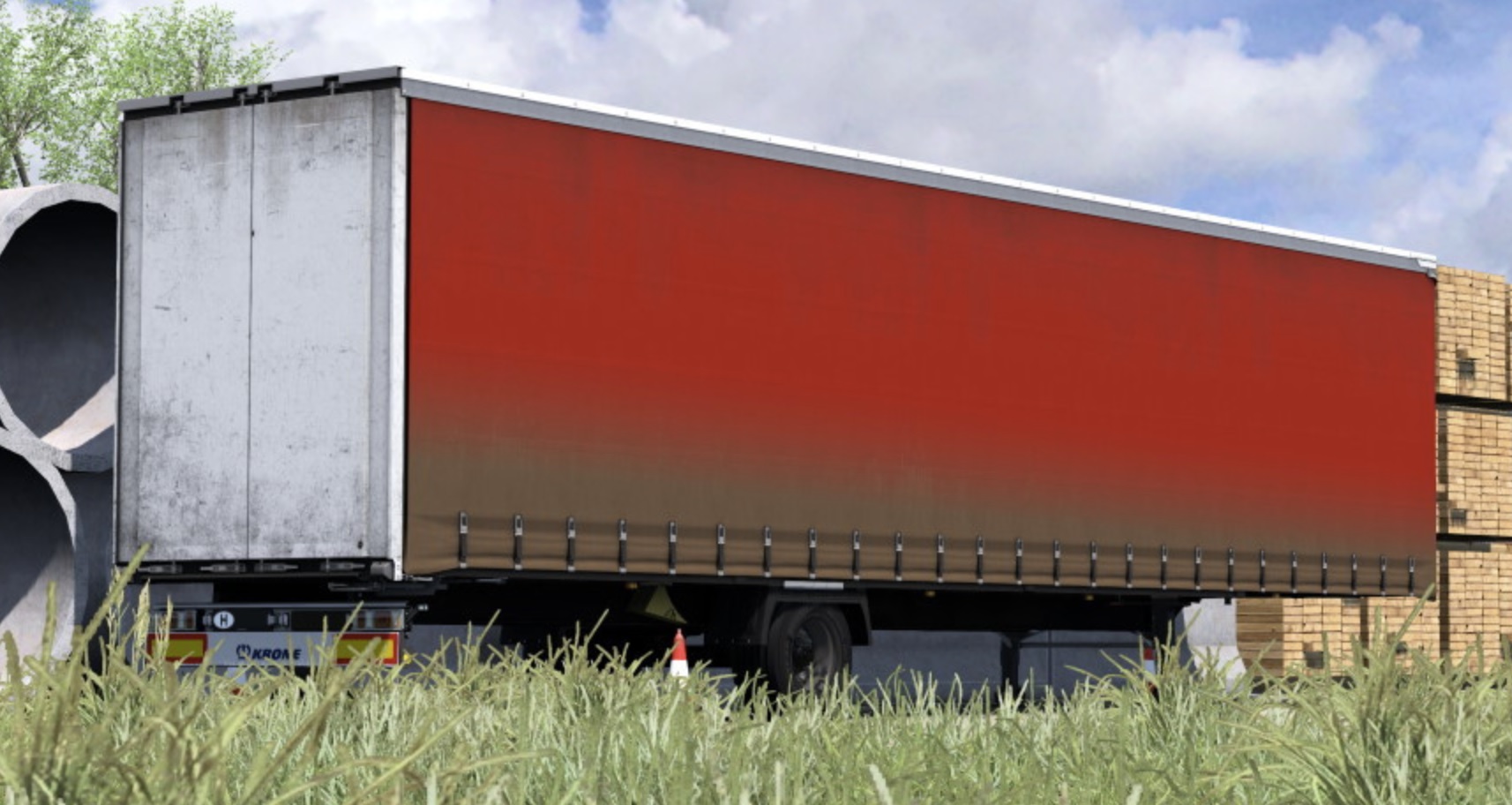 Since the previous one became a laughing stock, I remade the dirt texture on the side. This is a dirty/muddy trailer skin for the Krone Megaliner mod by Sogard3. The base (curtain) is paintable, you can change it to whatever color you want. REQUIRED MOD: https://modsbase.com/ojhamyd31tms/krone_mega_kdlc_1.36.scs.html I strongly recommend to remove the reflections of the curtain with the following mod: https://www.mediafire.com/file/n41cn5d77ydjcuc/krone_mega_kdlc_mat.zip/file Tested on 1.36. Have fun! Credits: Sogard3, TheNuvolari Credits: Sogard3, TheNuvolari |