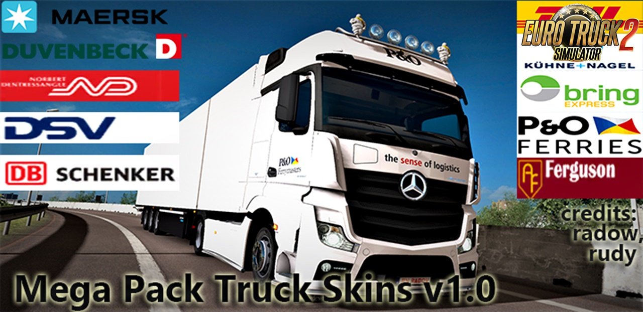 -Skins include for all Trucks and Scania RJL -Skins NOT include Scania S and Man E6 Madster Tested in 1.32.x game version Credits: Radow, Rudy |