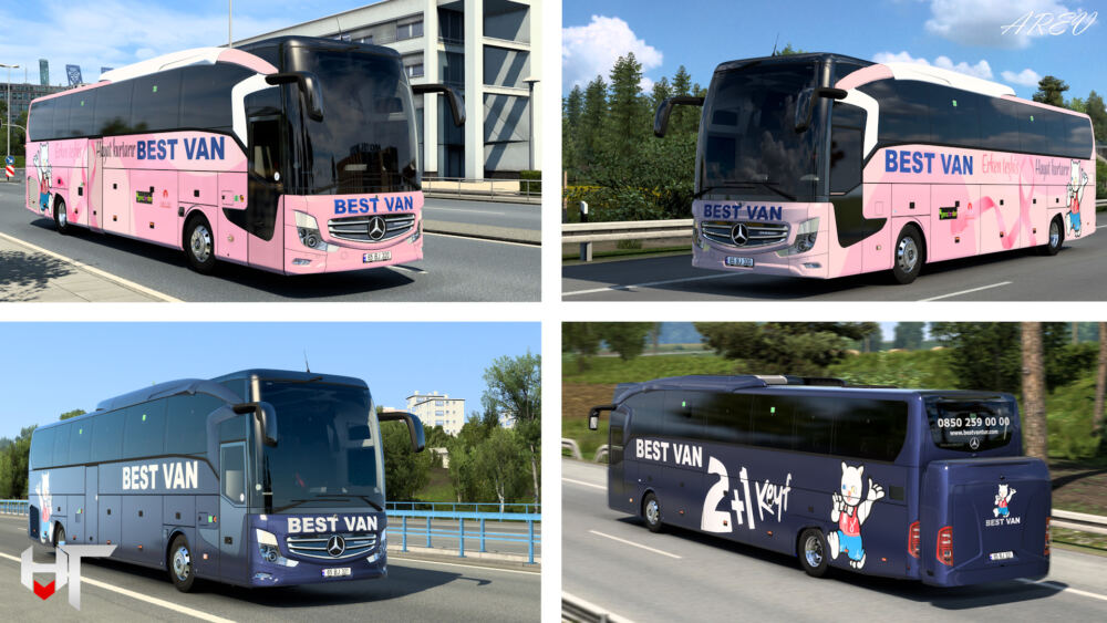 Heavy Vehicles Turkey Mercedes-Benz Travego 16 SHD modu için Best Van Turizm kaplaması sizlerle. Custom Template 1/2/3/4’de çıkar. Modun çalışması için modu araç modunun üstüne koyunuz. Keyifli sürüşler.