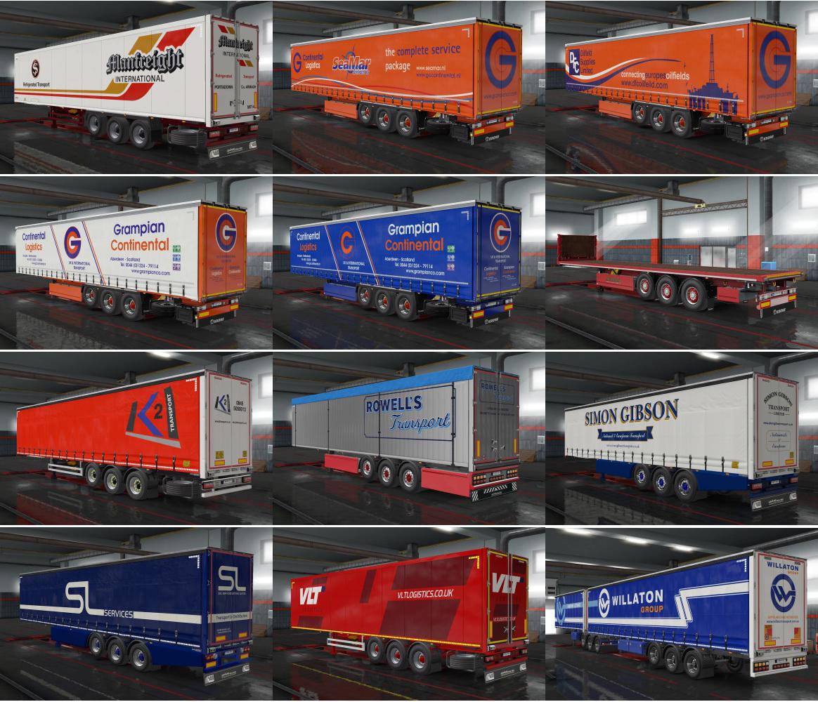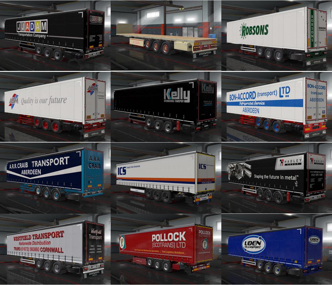 Skinpack for owned trailer (UK companies) Included skins: Alsop Transport - SCS curtainsider JJ Adam Haulage - SCS curtainsider (2 variants) Westfield Transport - SCS curtainsider Willaton Transport - SCS curtainsider Rowell's Transport - SCS walking floor Grassmen - SCS flatbed Grampian Continental - Krone flatbed + Krone profiliner (4 variants) ICS - Krone profiliner IRF - Krone profiliner Pollock - Krone profiliner Hadley Group - Krone flatbed + SCS flatbed JM Murdoch - Krone flatbed ARR Craib - SCS curtainsider K2 Transport - SCS curtainsider Kelly International - SCS curtainsider Paul Uden Transport - SCS curtainsider Simon Gibson Transport - SCS curtainsider SL Services - SCS curtainsider Wreford Transport - SCS curtainsider ADM Distribution - SCS reefer Bon-Accord - SCS reefer Gibb's - SCS reefer Harrier Express - SCS reefer Harrisons Transport - SCS reefer Manfreight - SCS reefer Robsons of Spalding - SCS reefer VLT Logistics - SCS dryvan Bosveal Transport - SCS walking floor Game version 1.37 and higher Credits: speedy143 |