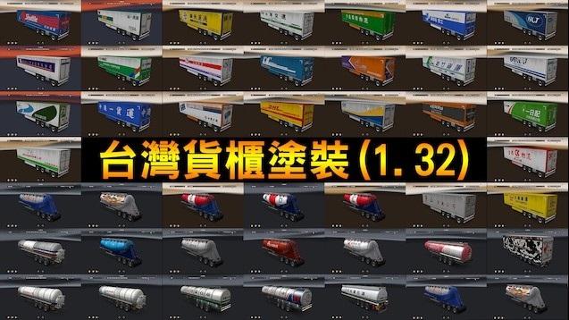 This module is generic in Taiwan common Logistics truck painting, to replace the game itself, the built-in container coating. Currently there are about 40 more of the coating, the future will slowly increase… Note: Portion of the container coating need to install the map DLC. (Italia, Vive la France!, the Scandinavia And Going East!) Portion of the container coating will not completely or run a bit to happen. (Sub-vehicles, tank cars) Game test version 1. 32, the 1.31 is not guaranteed to be available. Painting the inside of the company LOGO pattern is the copyright of the original company. Credits: Shin-Min Credits: Shin-Min |