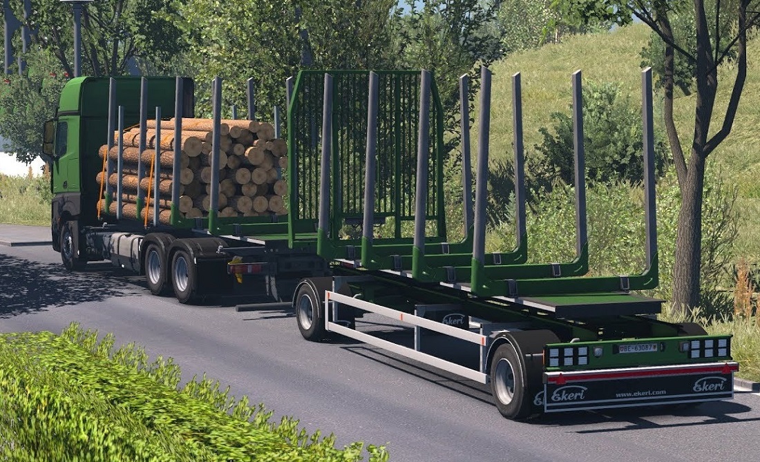 AD Timber Ekeri - quality loggin trailer mod added for ETS 2 fans players. This mod make you aviliable timber body from Mercedes Actros MP4 edit by Alex becouse of that you need his mod. Features mod trailer AD Timber Ekeri: - This mod make you available small timber body on ekeri chassis - Standalone - Ownable - the model has own wheels - working brake lights - high quality model Changes in v1.1.2: - added AD - Alucar pilars Tested on game version 1.36.x Credits: Teklic, Alexandru_Andrey |